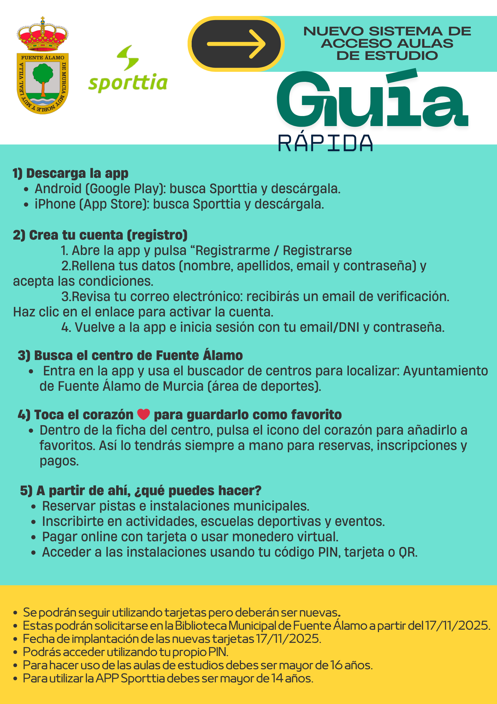 Ya puedes descargar la guía rápida para acceder a las instalaciones municipales del Ayuntamiento de Fuente Álamo como, la Casa de la Cultura de Balsapintada y el Aula de Estudio de Fuente Álamo a través del siguiente enlace: https://ayto-fuentealamo.es/wp-content/uploads/2025/11/guia-rapida-acceso-a-instalaciones-municipales-de-fuente-alamo.pdf