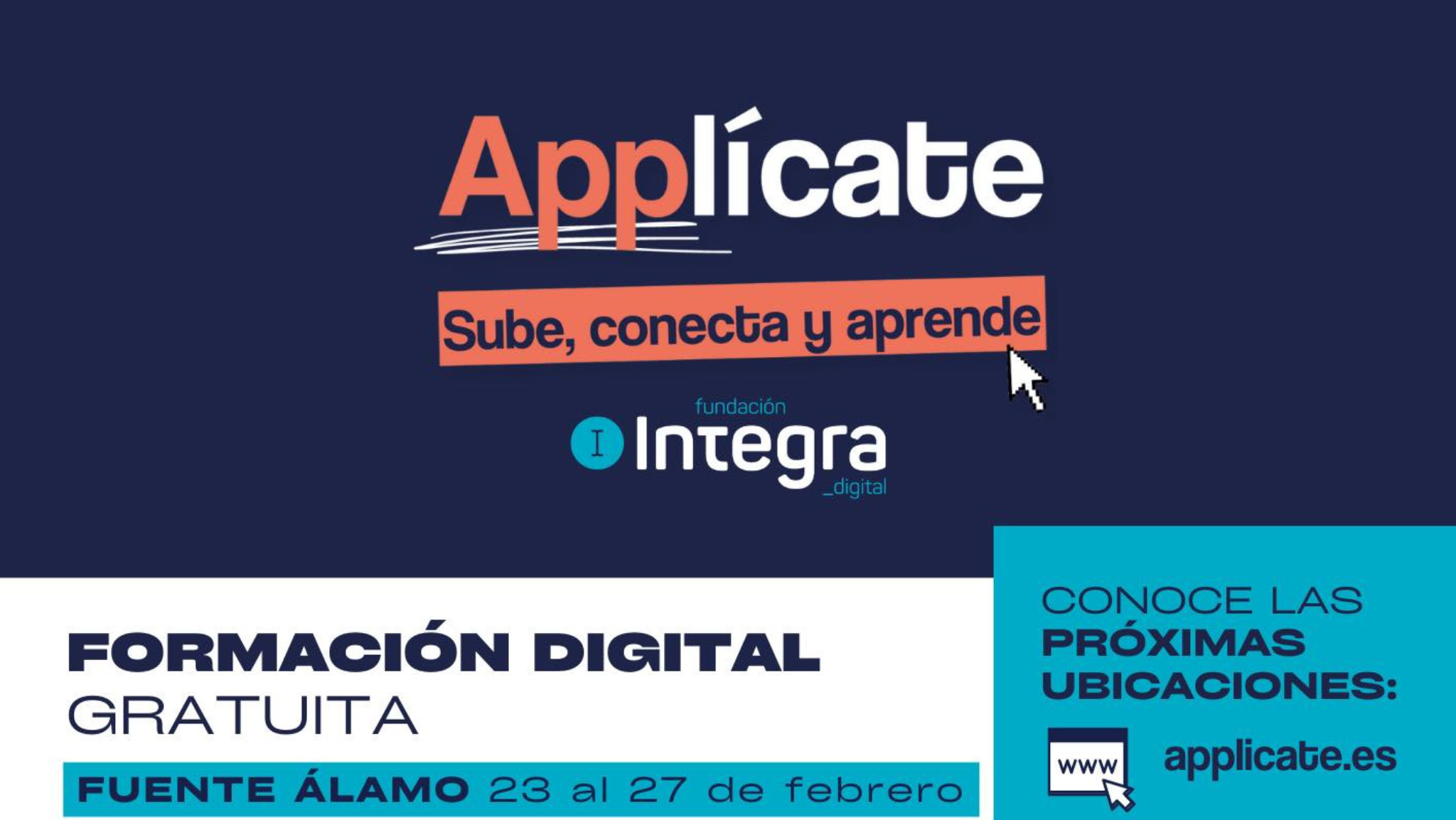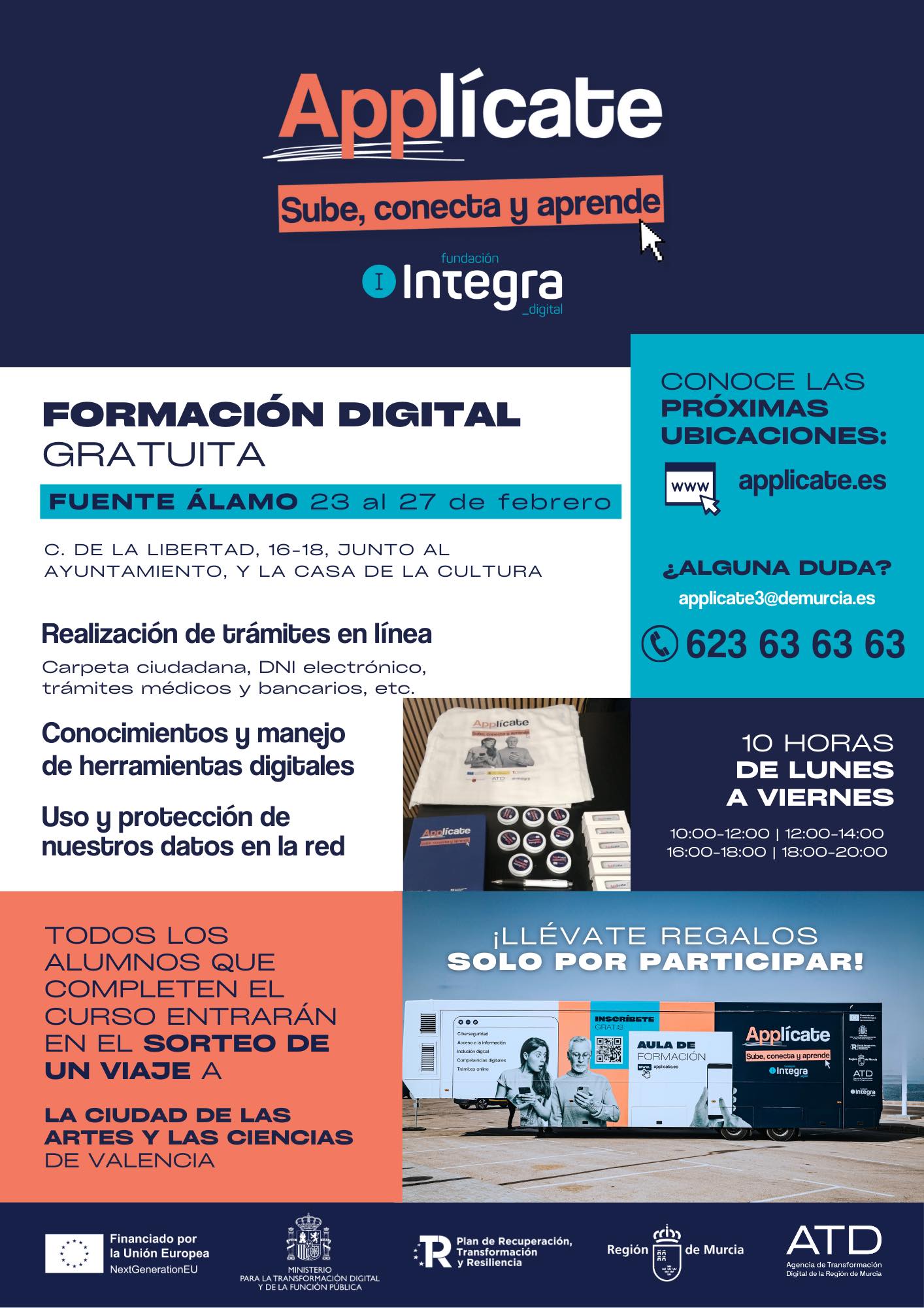 Del 23 al 27 de febrero, la unidad móvil de “Applícate: Sube, conecta y aprende” estará en la C/ de la Libertad, junto al Ayuntamiento y la Casa de la Cultura, de 10:00 a 20:00h.