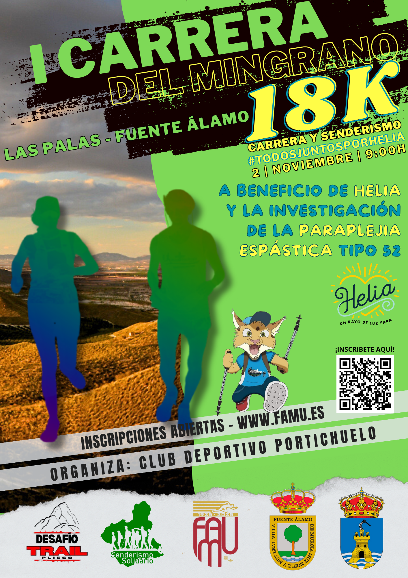 Bajo el lema #TodosJuntosPorHelia, esta carrera y ruta senderista tiene como objetivo recaudar fondos para Helia, una niña que padece Paraplejia Espástica Tipo 58, una enfermedad rara que requiere investigación y apoyo médico constante.