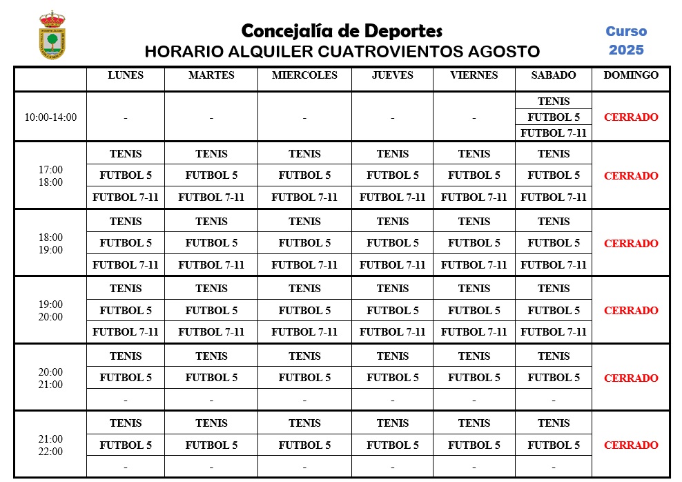 Polideportivo Cuatrovientos. Reservas verano 2025