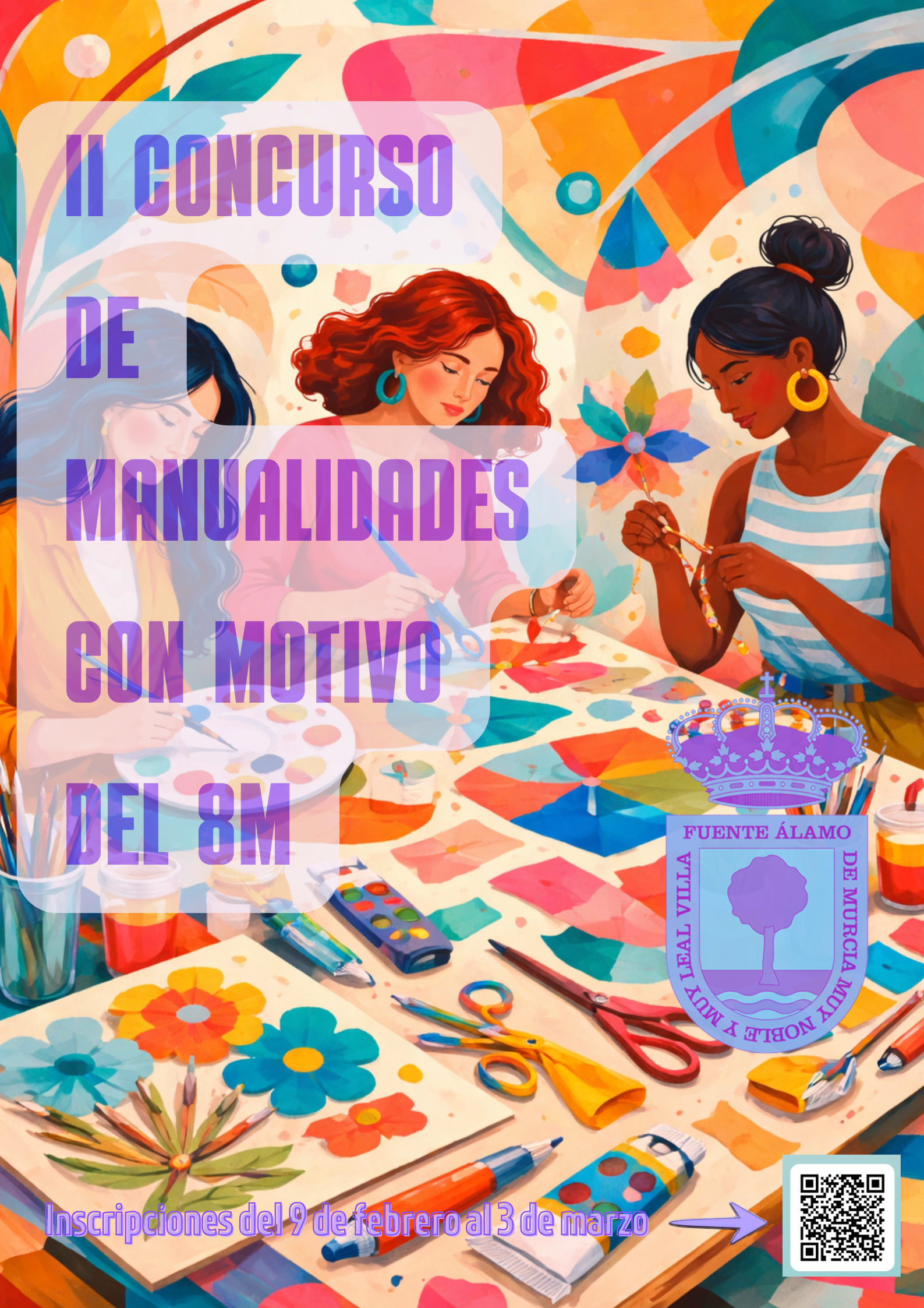 INSCRIPCIÓN MEDIANTE CÓDIGO QR SITUADO EN EL CARTEL O, EN EL SIGUIENTE ENLACE: II CONCURSO DE MANUALIDADES CON MOTIVO DEL 8 DE MARZO, DIA INTERNACIONAL DE LA MUJER.