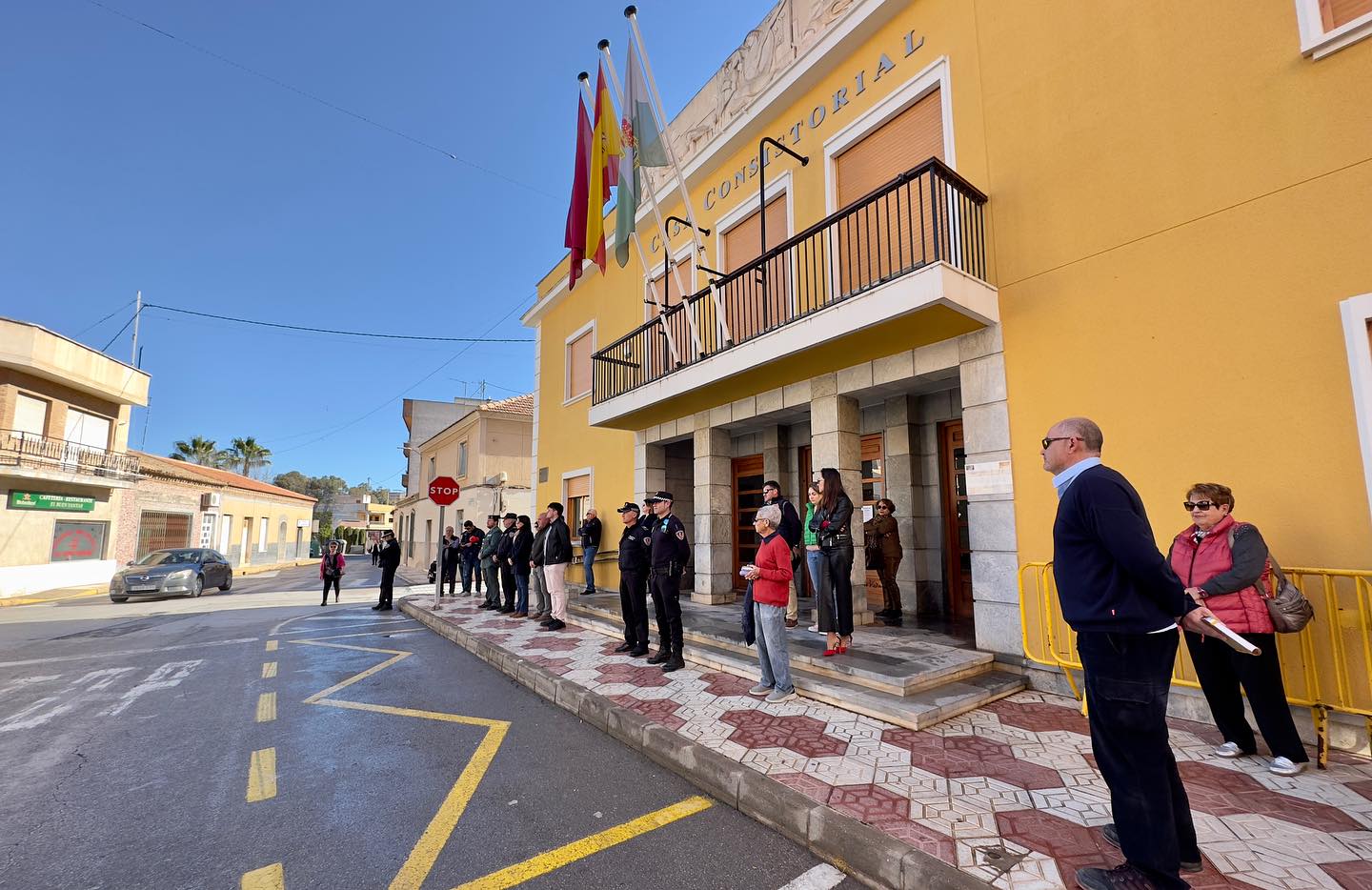Autoridades, personal del ayuntamiento, mandos policiales y vecinos; se han concentrado esta mañana en la Casa Consistorial como muestra de apoyo a las familias y a los miembros de las Fuerzas y Cuerpos de Seguridad del Estado.