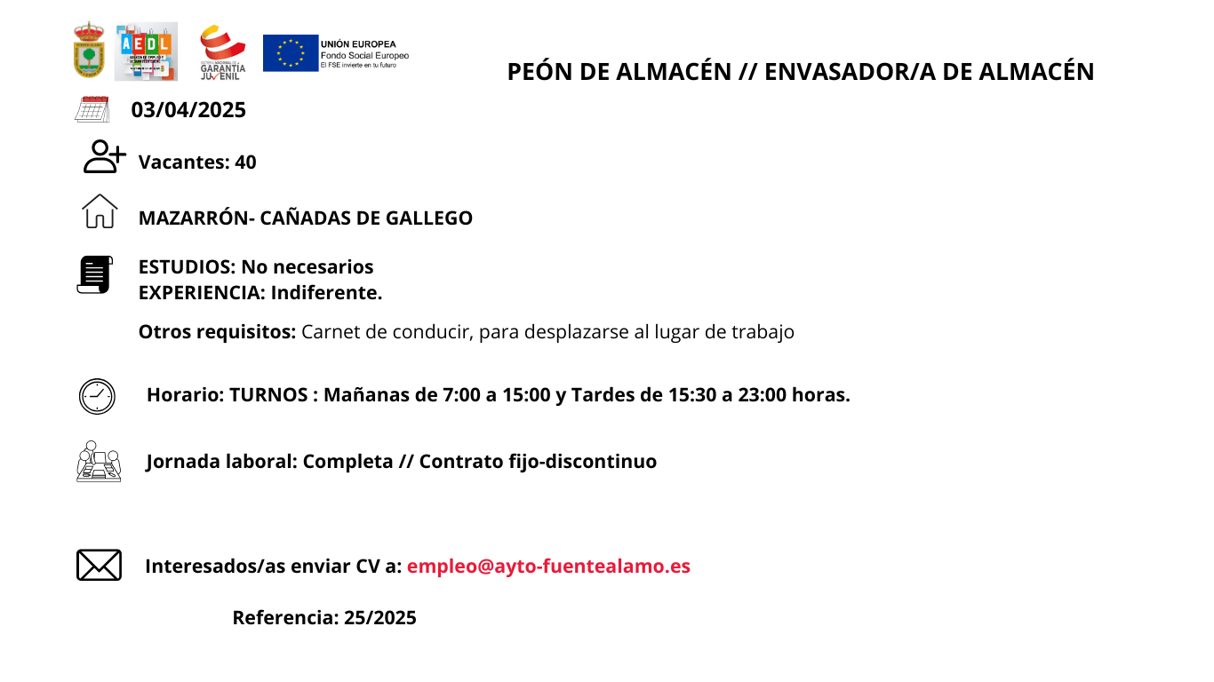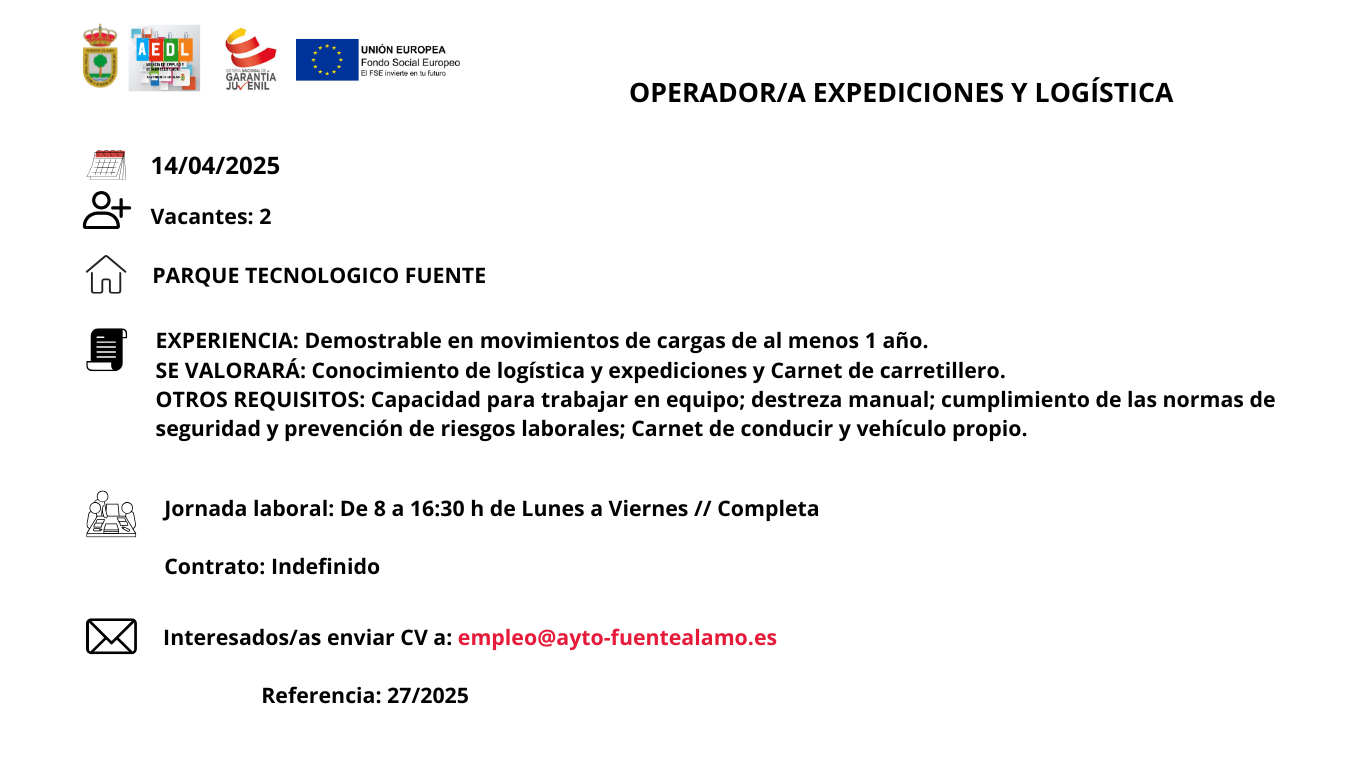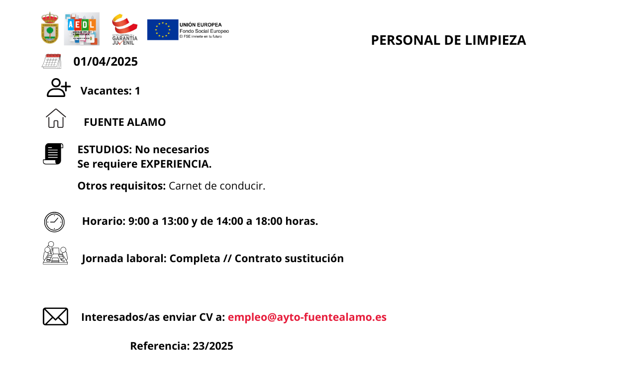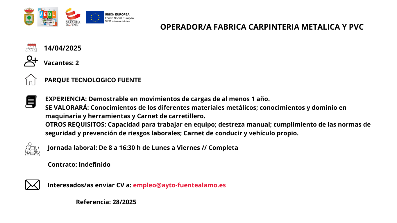 Ofertas de empleo en Fuente Álamo de Murcia2025-04-092025-04-16https://ayto-fuentealamo.es/wp-content/uploads/2020/05/logo-ayuntamiento-f-alamo.pngAYUNTAMIENTO DE FUENTE ÁLAMO DE MURCIAhttps://ayto-fuentealamo.es/wp-content/uploads/2025/04/banner-ofertas-de-empleo-1.png200px200px