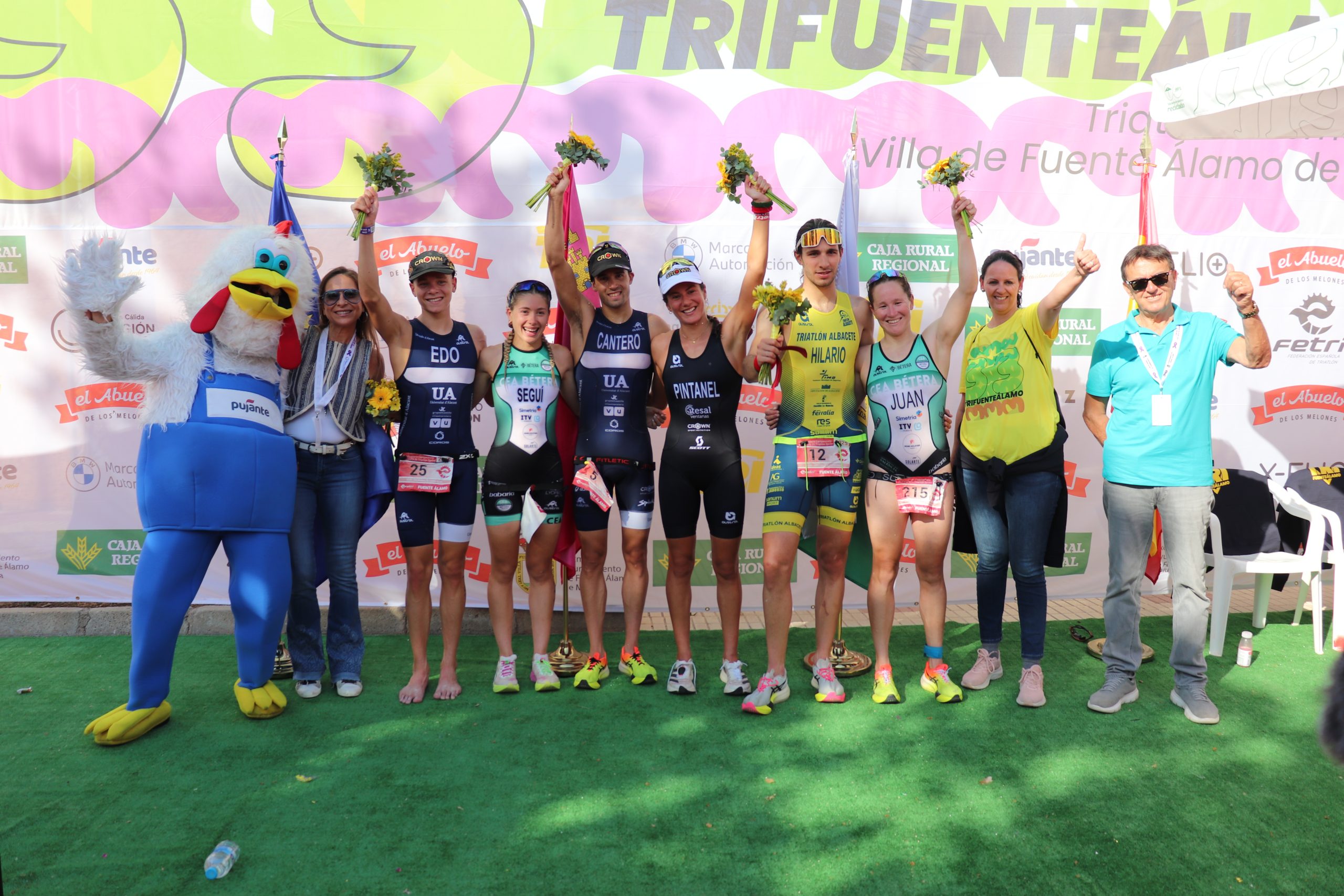 Desde el Ayuntamiento de Fuente Álamo, queremos trasladar nuestra enhorabuena al ganador y ganadora de esta edición: Marta Pintanel, vencedora en la categoría femenina, y David Cantero, quien revalidó su título por segundo año consecutivo en la categoría masculina. El podio femenino lo completaron Alejandra Seguí y Noelia Juan, mientras que el podio masculino lo formaron, junto a Cantero, los triatletas Izan Edo y Andrés Hilario.
